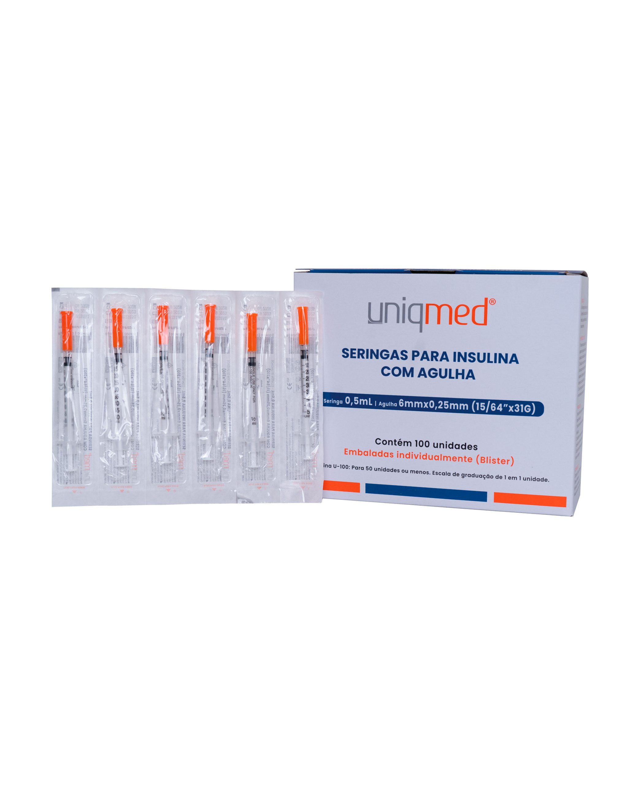 Seringas para insulina Uniqmed – 0.5mL Agulha 6mmx0.25mm